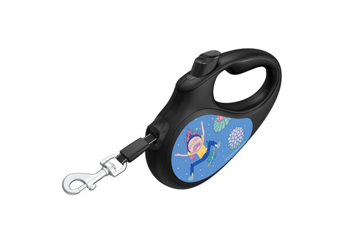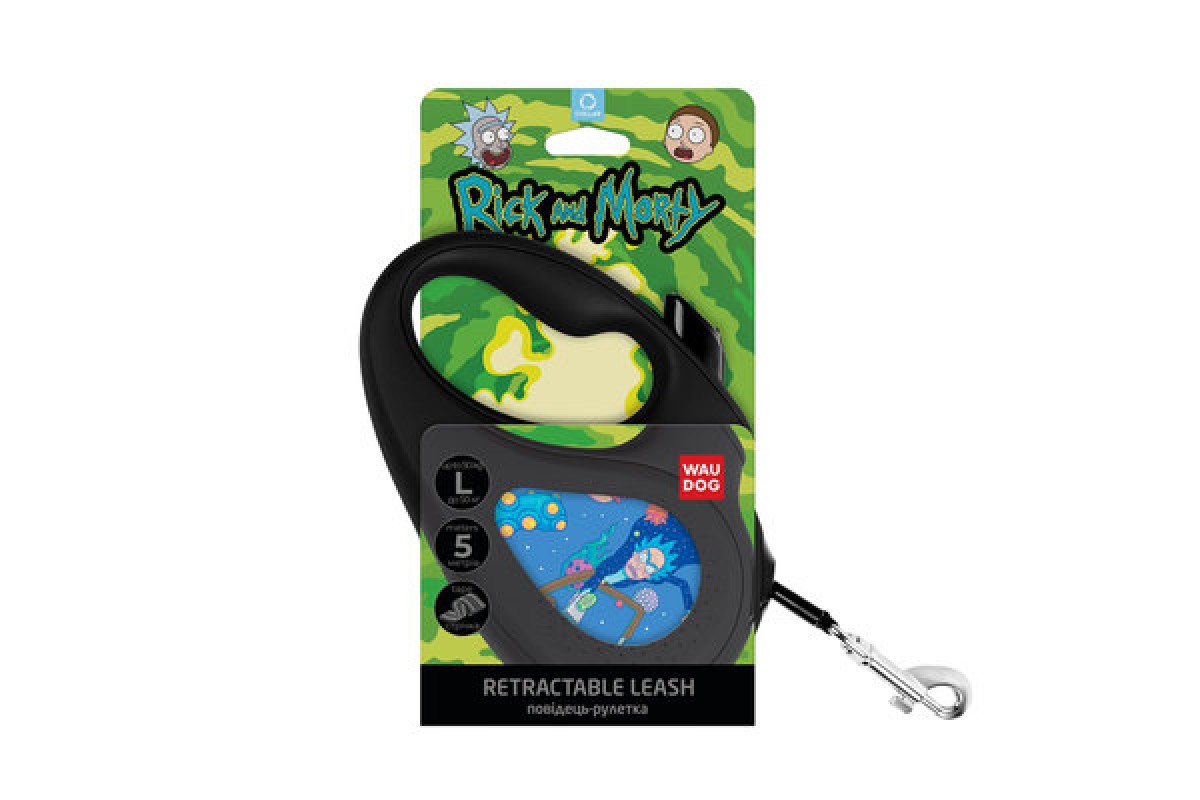 Повідець-рулетка для собак WAUDOG R-leash "Рік та Морті 3" L до 50кг 5м світловідбивна стрічка чорн