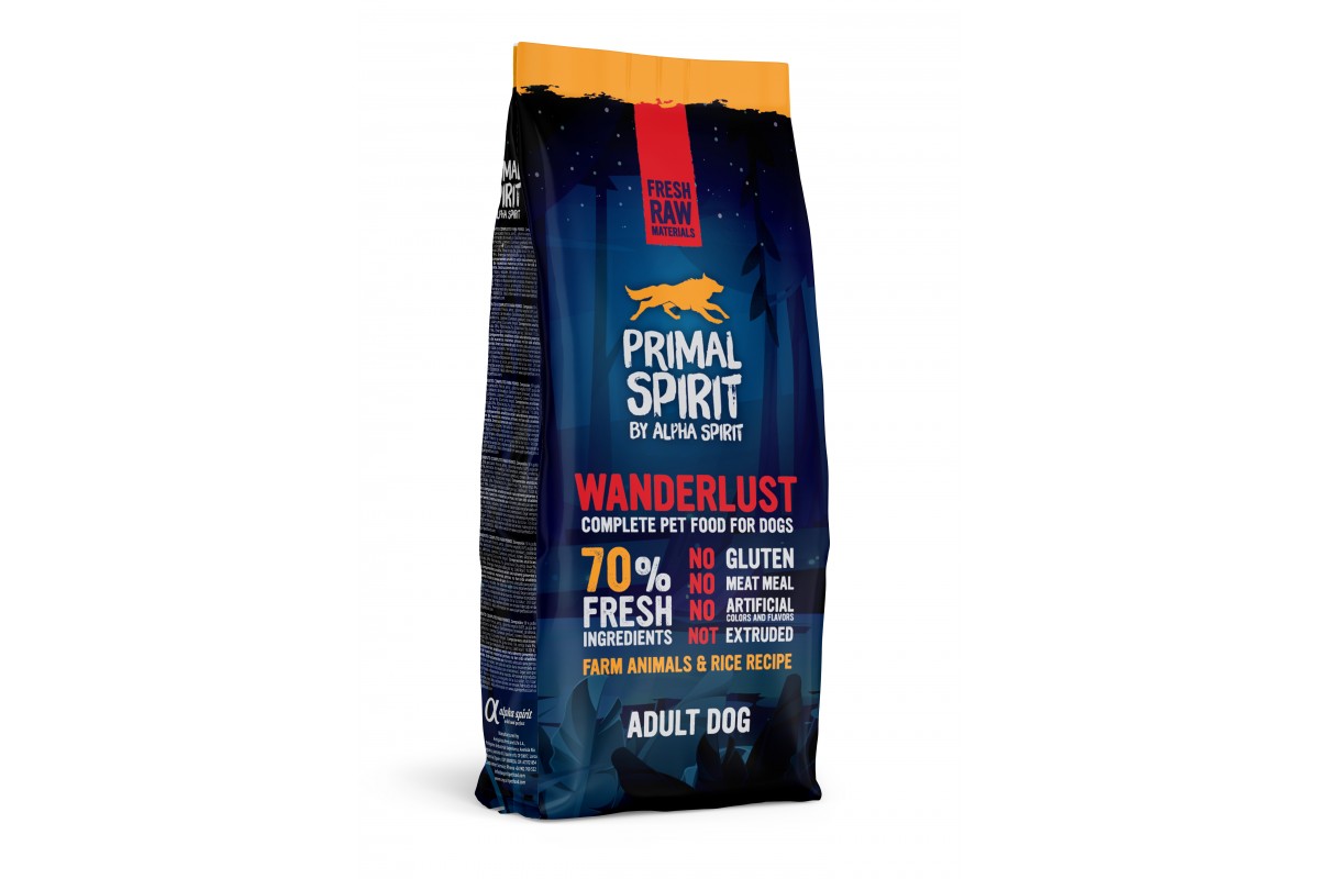 Примал Спирит 70% Вандерласт – это натуральный сухой полнорационный корм без глютена для взрослых собак, изготовленный из свежих ингредиентов (70%), со щедрым содержанием мясных протеинов, рисом, с добавлением природных источников витаминов и минералов.