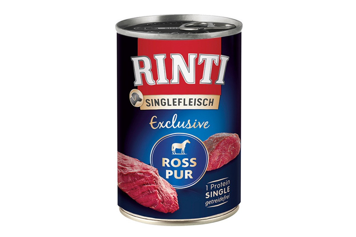 Беззерновой влажный корм Rinti Singlefleisch Exclusive Ross Pur РИНТИ МОНОПРОТЕИН, для собак, конина, 400 г