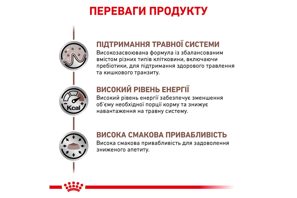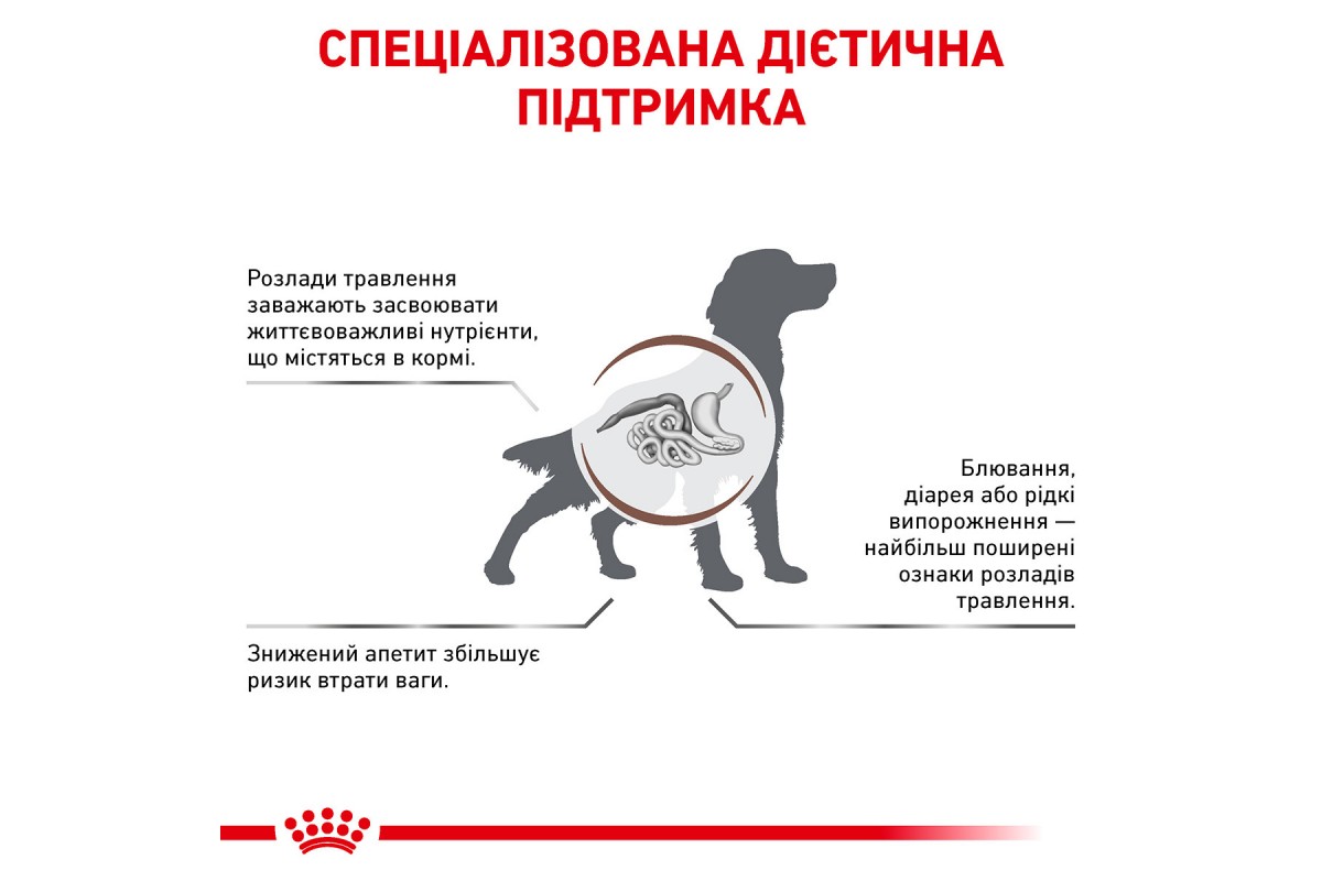 Gastrointestinal – это полнорационный диетический корм для собак. Рекомендуется при острых расстройствах желудочно-кишечного тракта, в реабилитационный период и в период выздоровления.