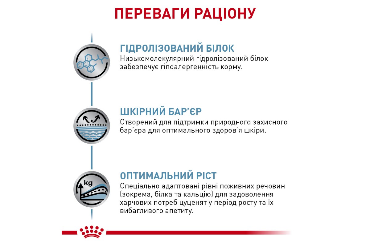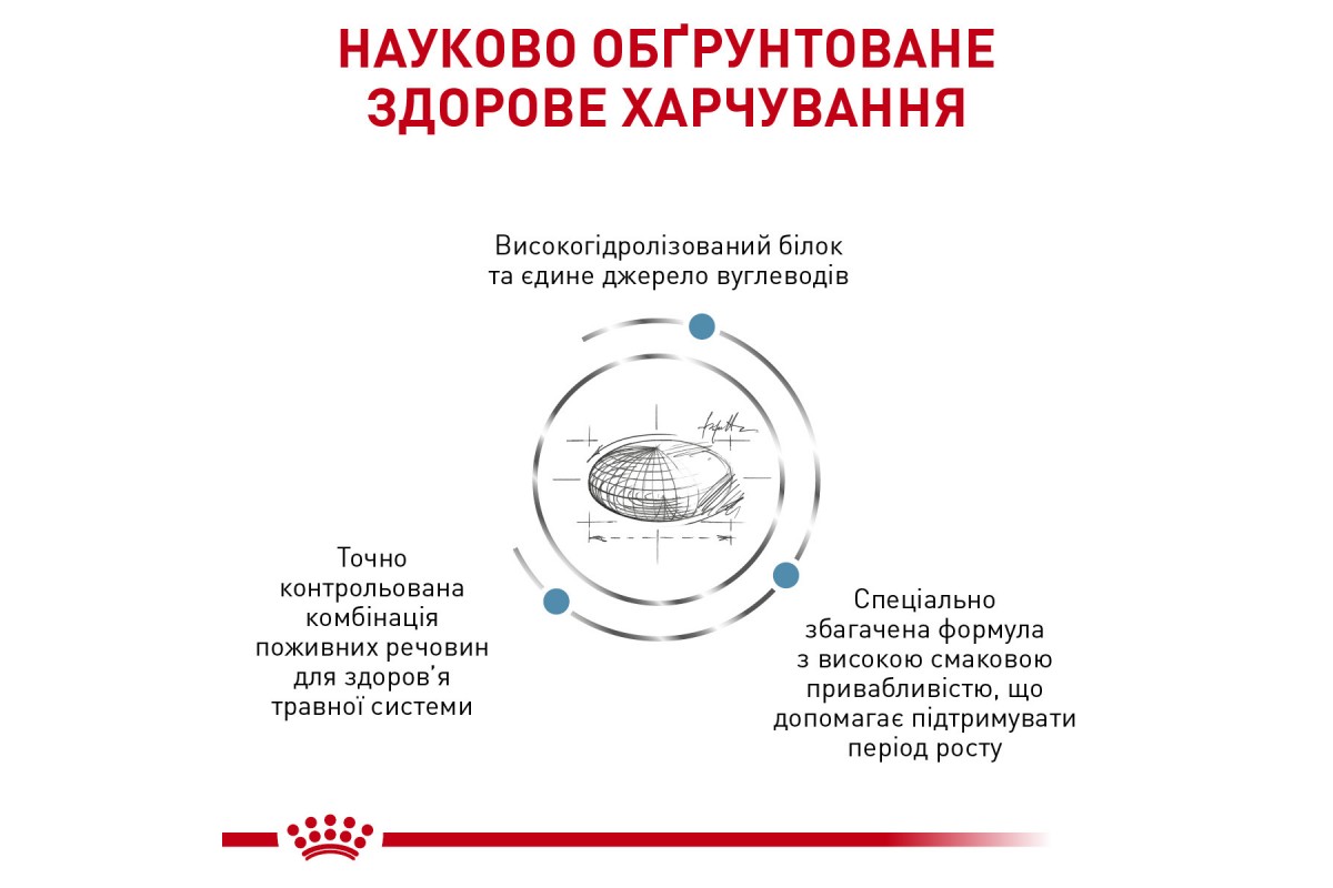 Низкомолекулярный гидролизованный белок обеспечивает гипоаллергенность корма.