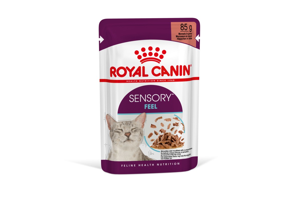 СТИМУЛЯЦИЯ ОРГАНОВ ЧУВСТВ Благополучие котов улучшается, если рацион обеспечивает сенсорные вариации. ROYAL CANIN® SENSORY стимулирует вкусовые рецепторы у котов и улучшает распознавание на уникальных текстур