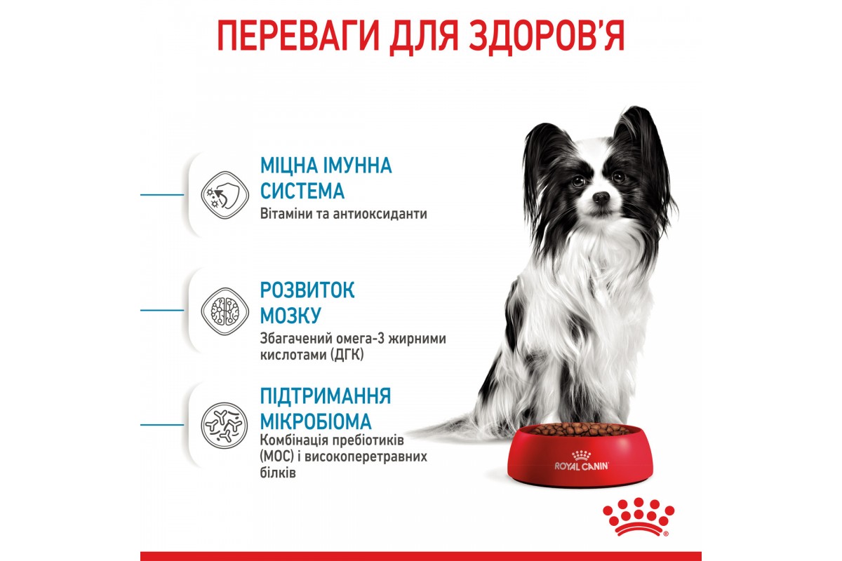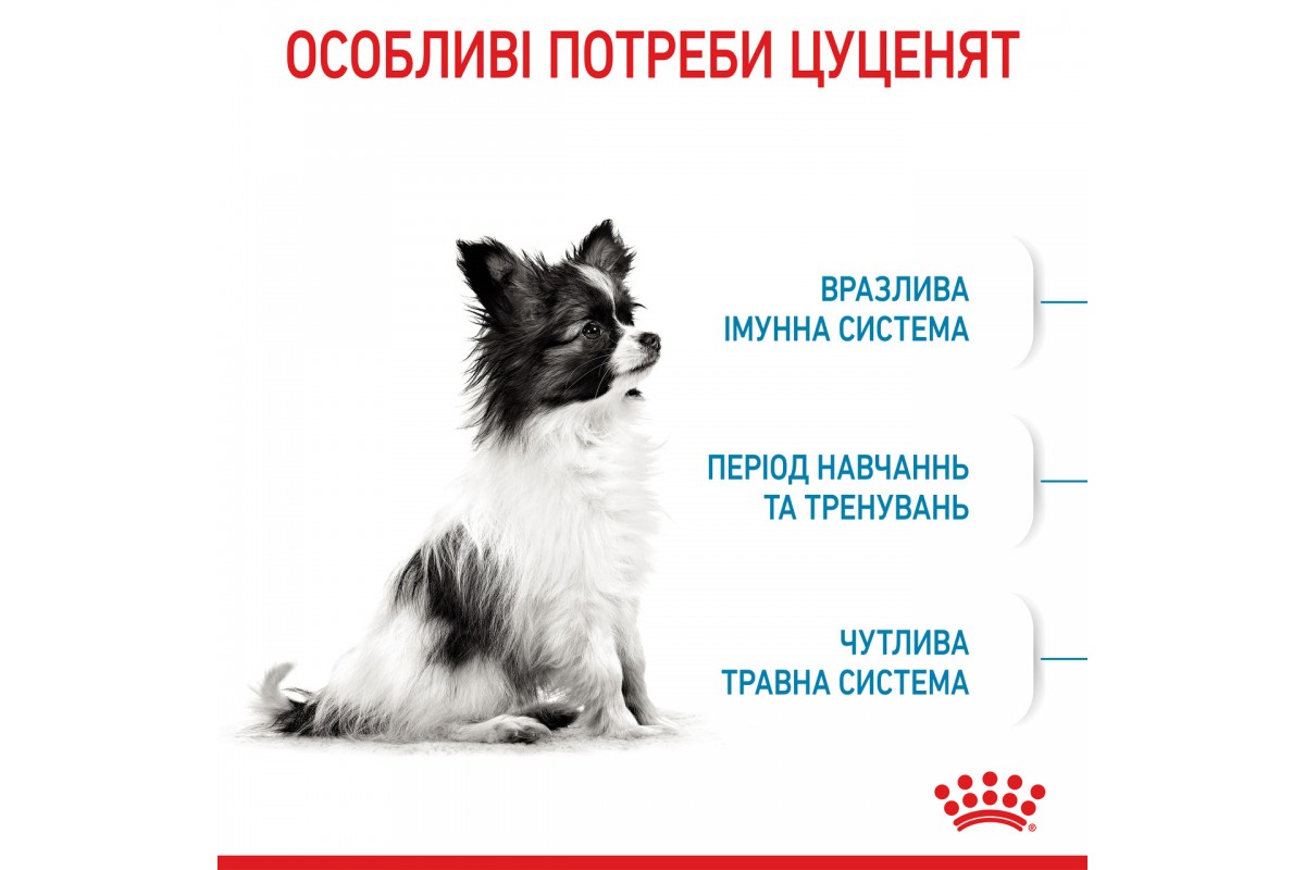 Полнорационный сухой корм для собак минимальных размеров. Вес взрослого животного до 4 кг в возрасте от 2 до 10 месяцев.