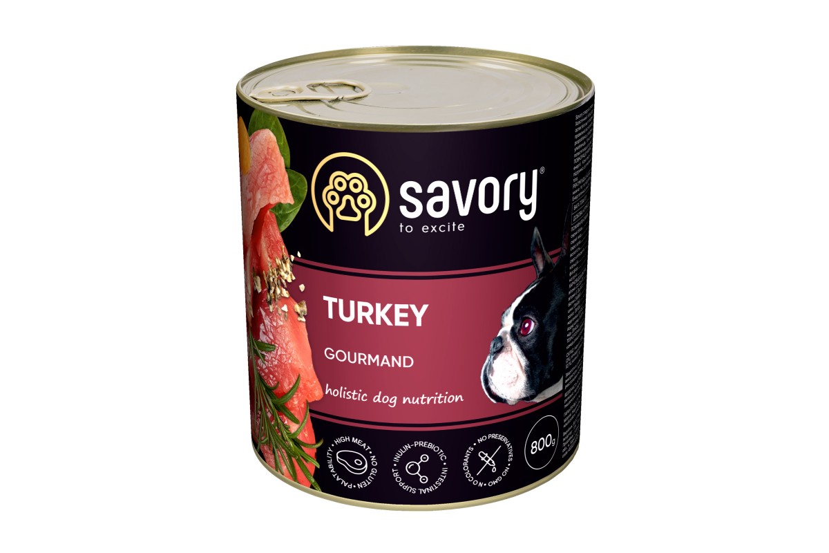 Влажный корм для взрослых собак всех пород Savory (Савори) Gourmand специально разработан для поддержания здорового рациона вашего любимца.Почему стоит купить:индейка и сердце индейки в составе корма обеспечивают собаку жизненно важными белками, минералами и микроэлементамикорм надолго утоляет голод, обеспечивает нормальную работу кишечника и нормализует процессы метаболизмаон богат протеинами, которые необходимы для развития и поддержки мускулатуры в отличном состояниисодержит антиоксиданты и витамины для здоровья сердца и суставовПроизводитель: VAFO PRAHA s.r.o., Чехия.