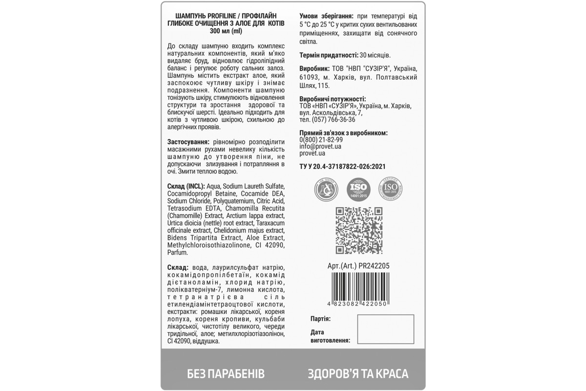Шампунь Профилайн глубокое очищение с алоэ для кошек 300мл