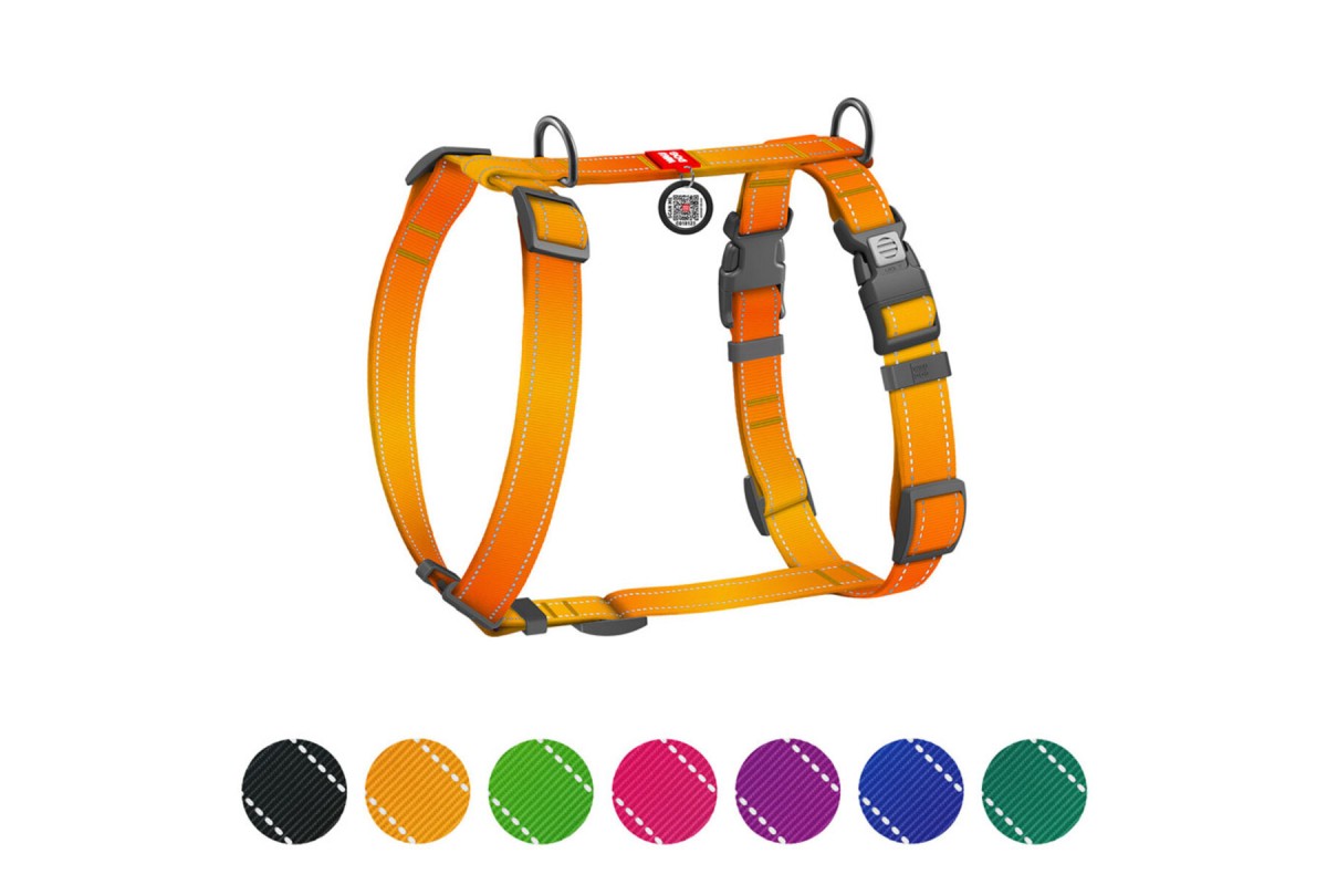 Шлея для собак H-подібна WAUDOG Nylon Mono QR світловід. розмір L Ш 25мм А 51-85cм В 60-85cм помаран