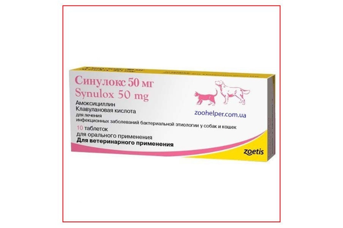 Синулокс относится к комбинированным антибактериальным препаратам. Амоксициллин – полусинтетический пенициллин широкого спектра действия, который оказывает быстрое бактерицидное действие на многие грамположительные (Streptococci, Staphylococci, Corynebacteria) и грамотрицательные бактерии (Esсherichia coli, Salmonellae, Bordetella bronchiseptica, Proteus spp., Pasteurellae, Klebsiellae), включая b-лактамазпродуцирующие штаммы. Резистентность к b-лактамным антибактериальным препаратам как правило обусловлена способностью микроорганизмов вырабатывать b-лактамазу – фермент, который разрушает b-лактамное кольцо антибиотика раньше, чем он сможет оказать действие на бактериальную клетку. Клавулановая кислота, входящая в состав синулокса, инактивирует b-лактамазу и тем самым восстанавливает чувствительность бактерии к бактерицидному действию амоксициллина в концентрациях, которые легко достигаются в тканях животных после введения препарата.