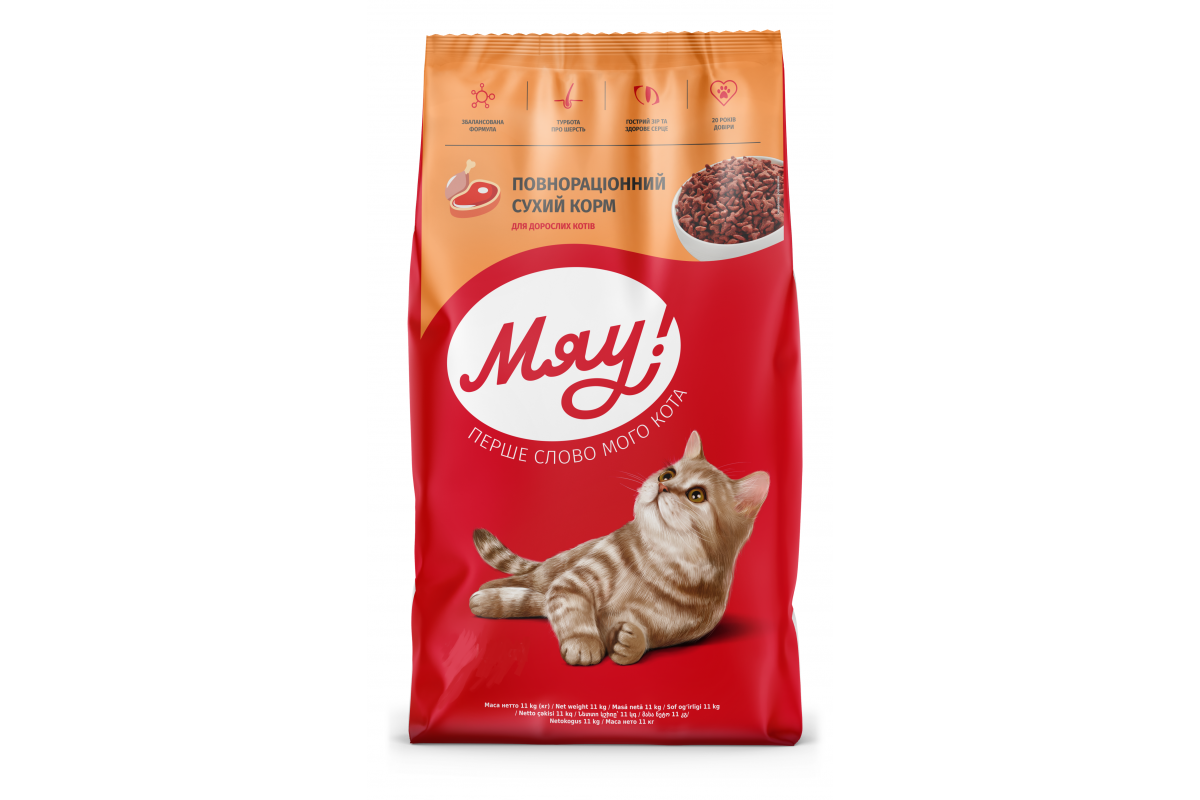 Полнорационный сухой корм Мяу для взрослых кошек говядиной