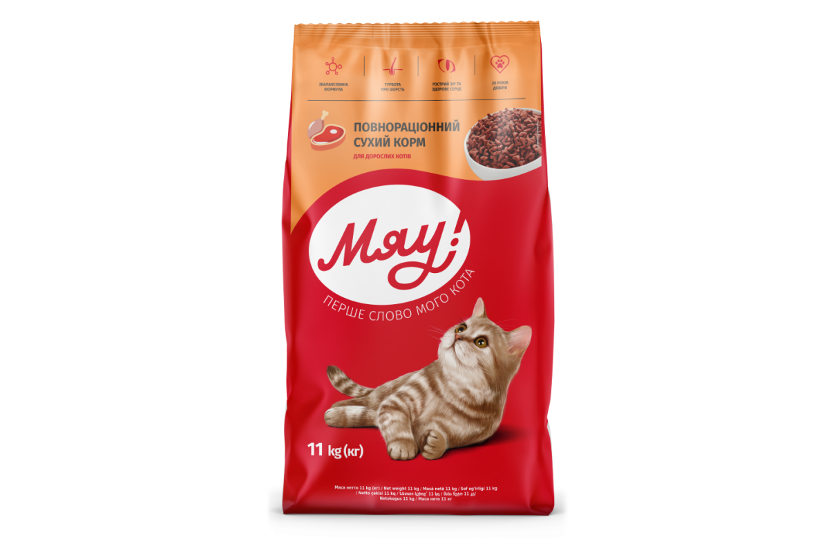 Сухой корм Мяу! для взрослых кошек, говядина, 11 кг