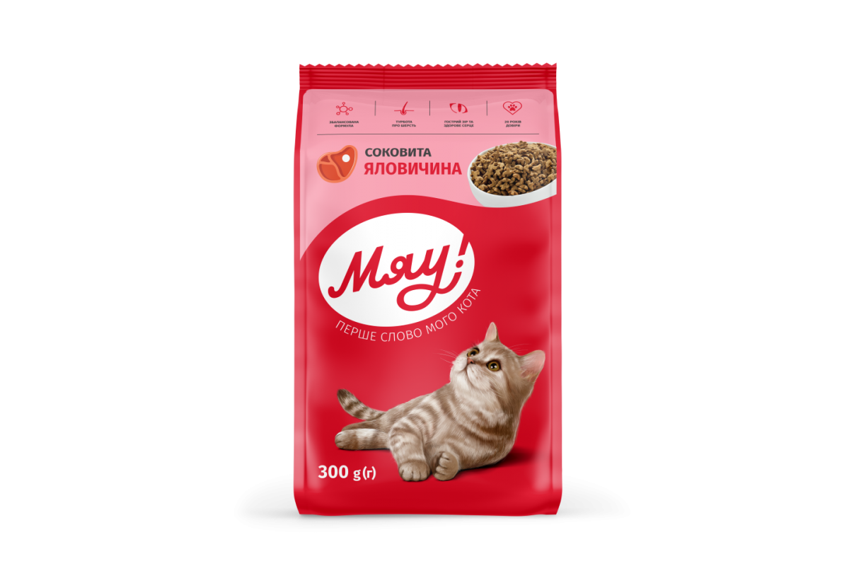Сухой корм Мяу! для взрослых кошек, говядина, 300 г