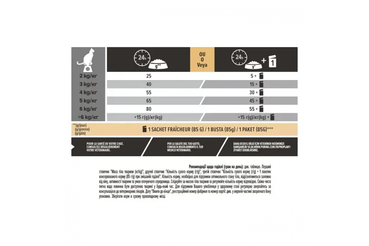 Количество корма, необходимое для поддержания оптимального состояния тела, будет отличаться в зависимости от возраста, активности животного и условий окружающей среды. Следите за весом животного и регулируйте количество корма соответственно. Свежая чистая питьевая вода должна быть доступна животному в любое время. Для поддержания Вашего любимца в здоровом состоянии регулярно обращайтесь за консультацией к ветеринарным врачам.
