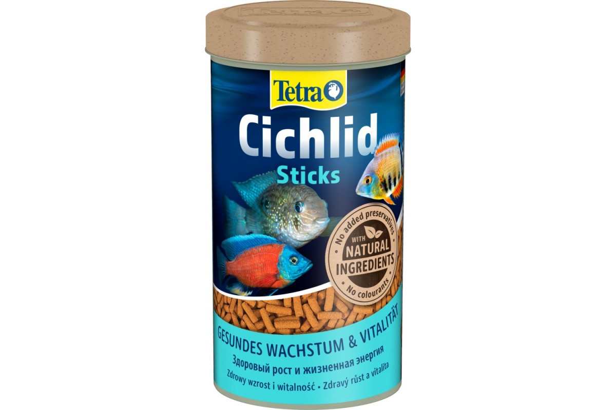 "Высококачественный полнорационный корм в виде палочек, специально разработанный для здорового и сбалансированного питания цихлид.