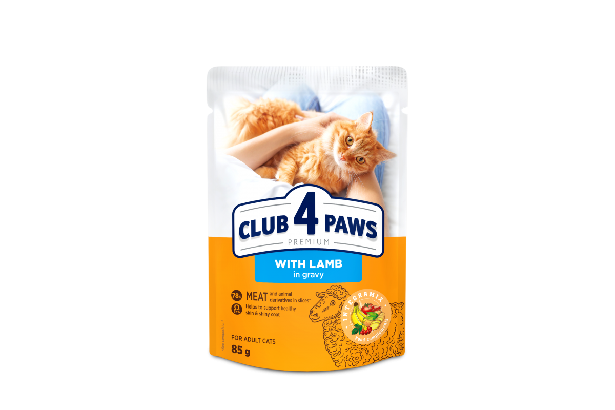 Вкусный влажный корм Club 4 Paws с ягненком в соусе для взрослых кошек