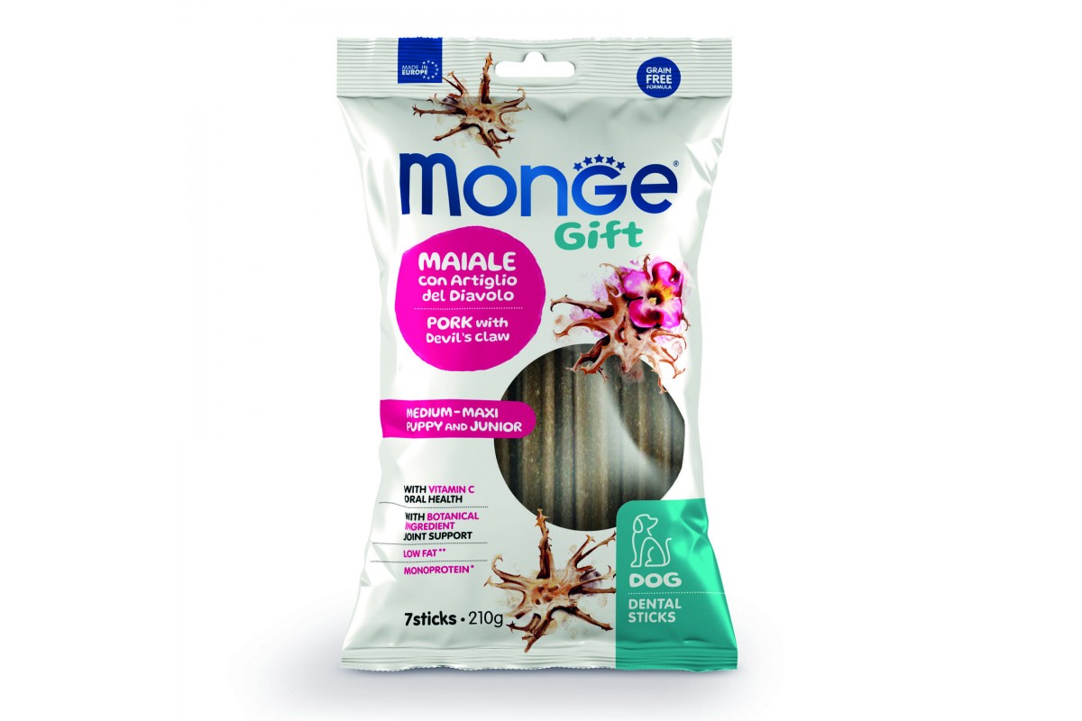 Зубные палочки Monge Gift Dog Puppy and Junior Medium & Maxi свинина с корнем когтя дьявола, 210 г