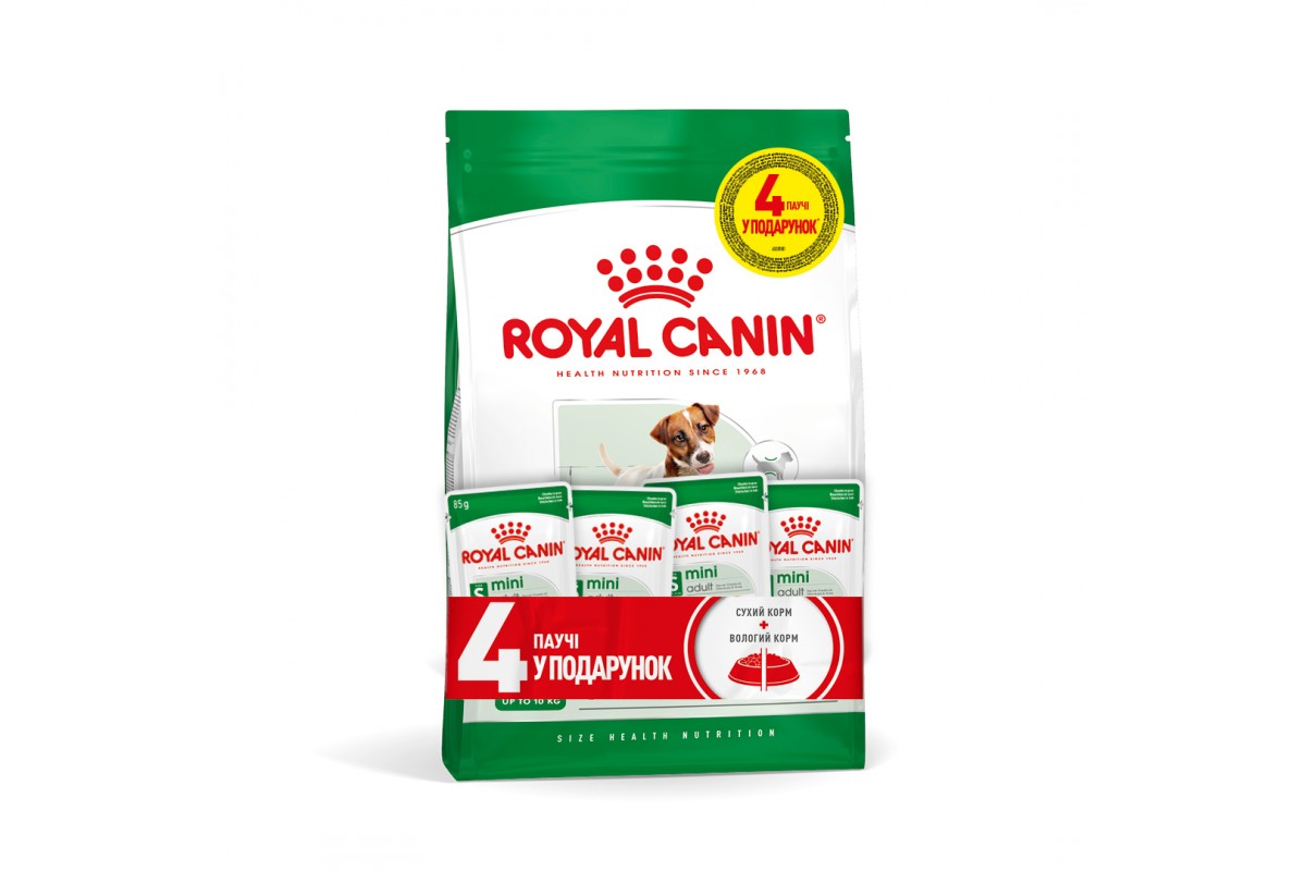 Акція // Сухий корм для дорослих собак ROYAL CANIN MINI ADULT 2кг + 4 паучі в подарунок