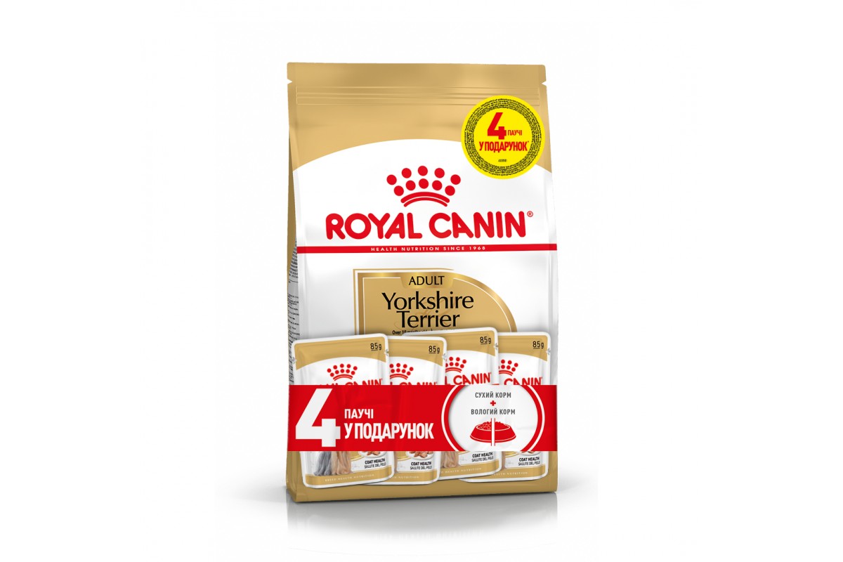 Акція // Сухий корм для дорослих собак ROYAL CANIN YORKSHIRE ADULT 1,5кг + 4 паучі в подарунок
