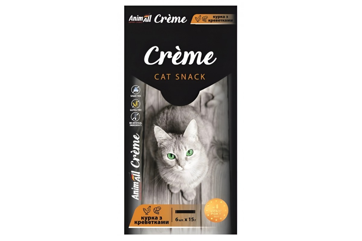 Ласощі для котів AnimAll Сrème, зі смаком курки з креветками, 15 г х 6 шт