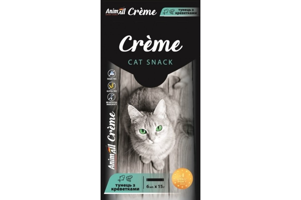 Ласощі для котів AnimAll Сrème, зі смаком тунця та креветки, 15 г х 6 шт