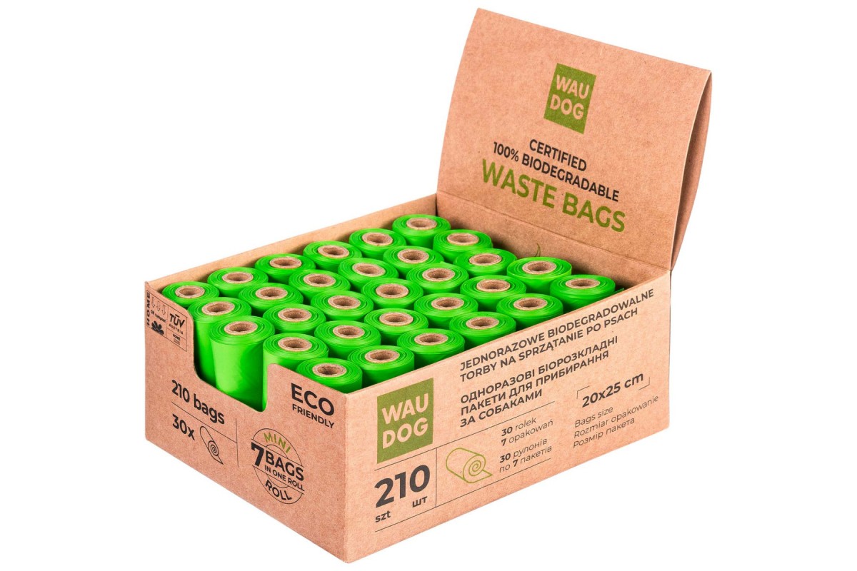 Біорозкладні пакети WAUDOG для прибирання за тваринами, МІНІ, 20х25 см, уп. 30 рул (210 шт)
