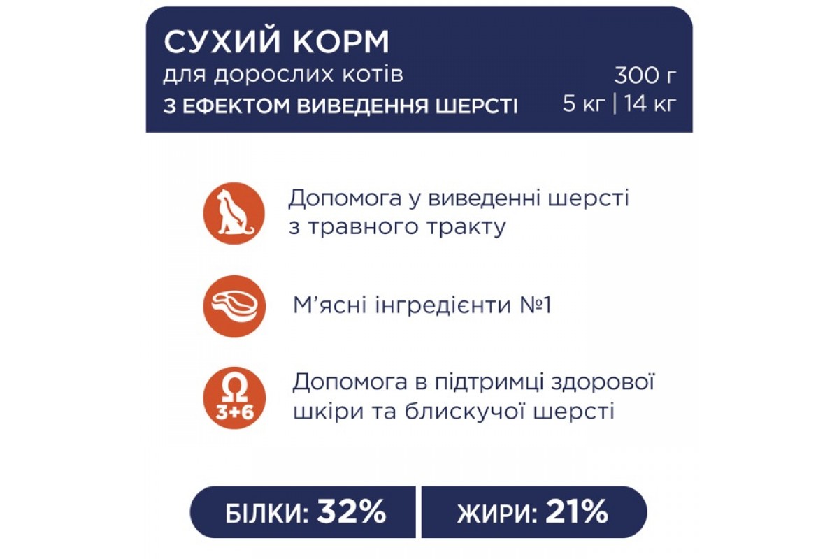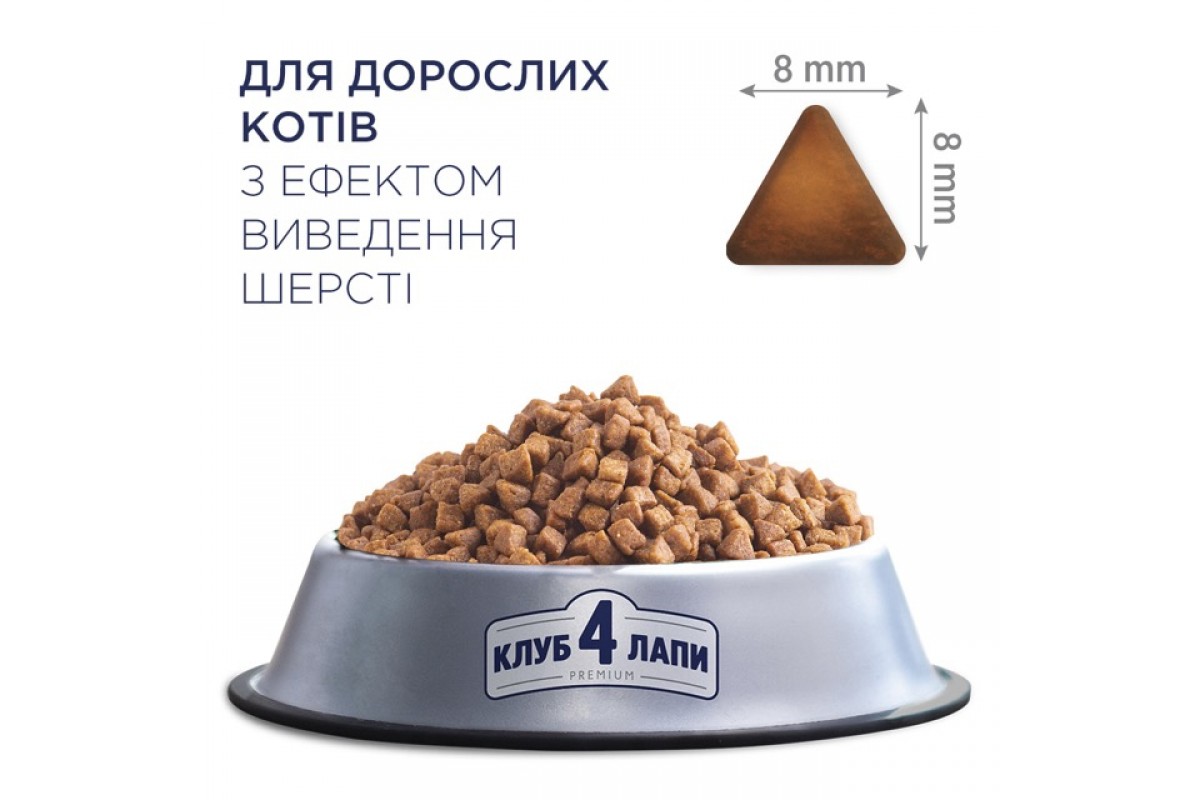 Сухий раціон Club 4 Paws Adult Cats Hairball Control для виведення грудок шерсті у котів.