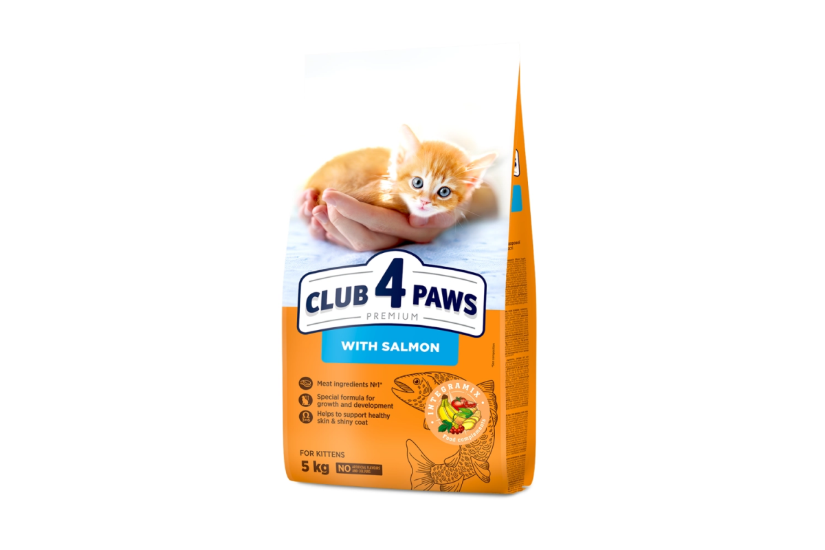 Переваги сухого раціону Club 4 paws для кошенят з лососем: