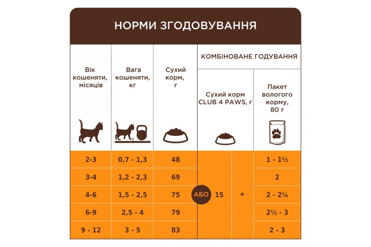 - Сухий раціон Club 4 Paws не містить шкідливих ароматизаторів і барвників, що особливо важливо для малюків.