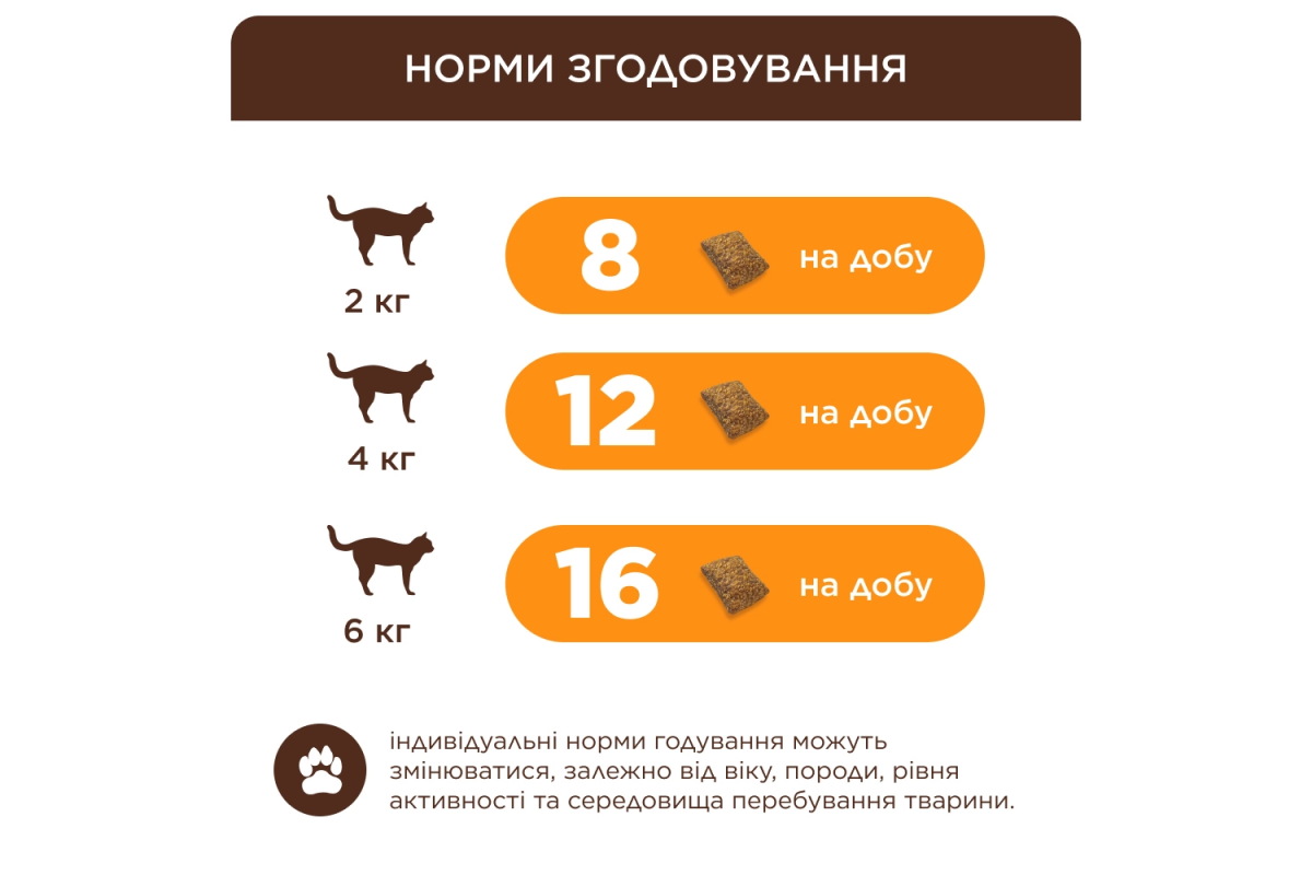 Індивідуальні норми годування можуть змінюватися, залежно від віку, породи, рівня активності та середовища перебування тварини.