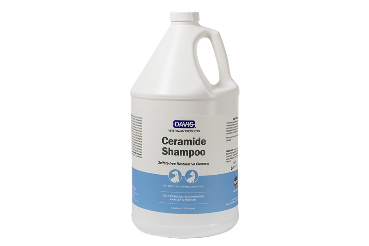 Davis Ceramide Shampoo – професійний безсульфатний відновлювальний шампунь для собак, котів, цуценят і кошенят, розроблений для дбайливого догляду за чутливою та сухою шкірою, а також для регулярного салонного грумінгу.