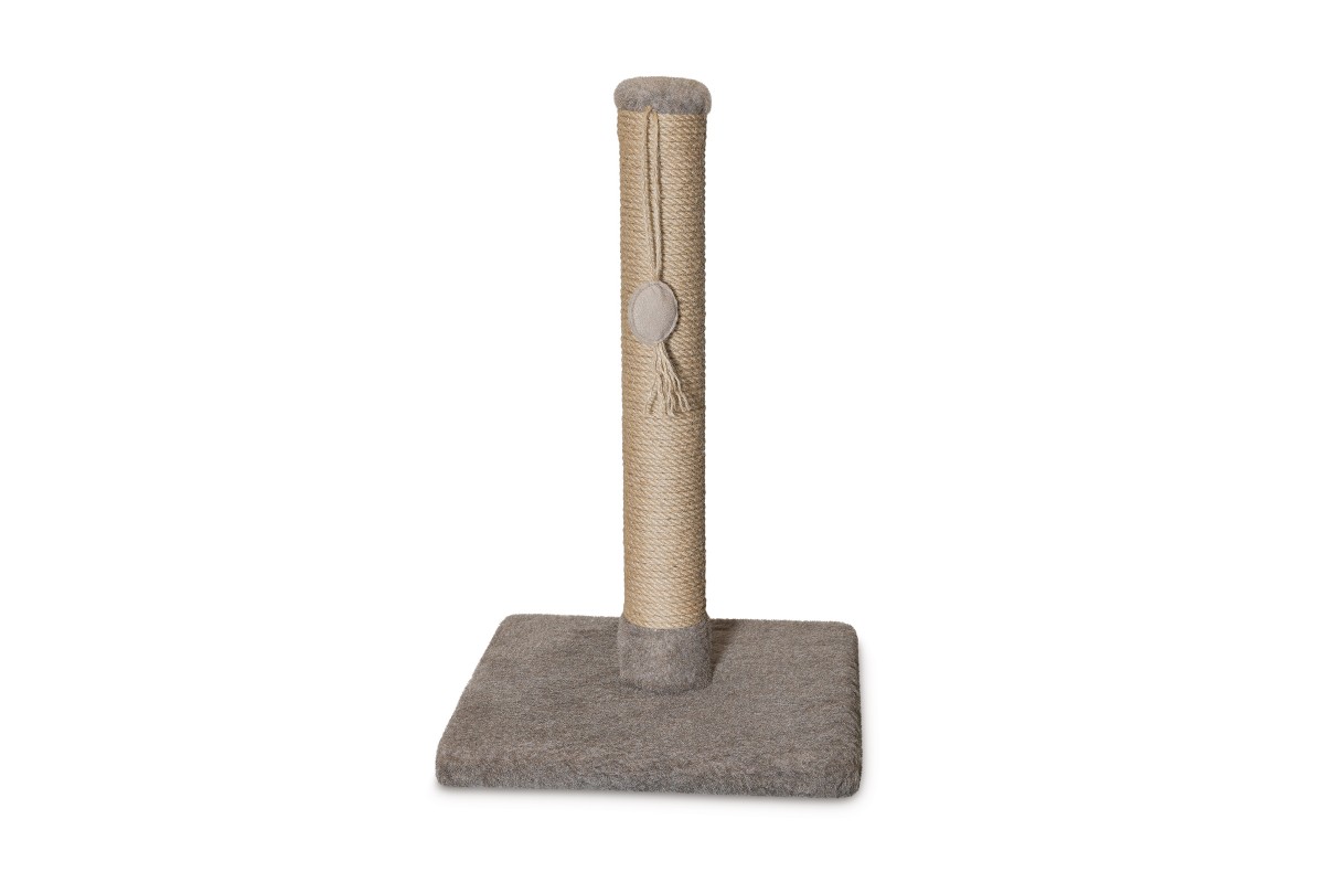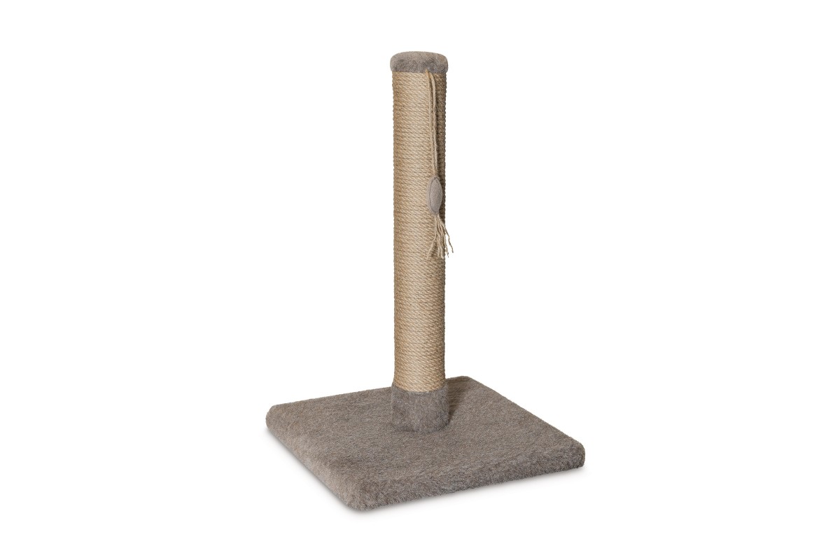 Проста стійка дряпка може стояти в будь-якому приміщенні, вона дуже компактна і чудово вписується в інтер'єр. Стовпчик, обгорнутий джгутом - натуральним рослинним волокном - дозволить уберегти інші предмети в будинку від гострих кігтиків, а «дражнилка» на шнурку стане улюбленою іграшкою улюбленця.