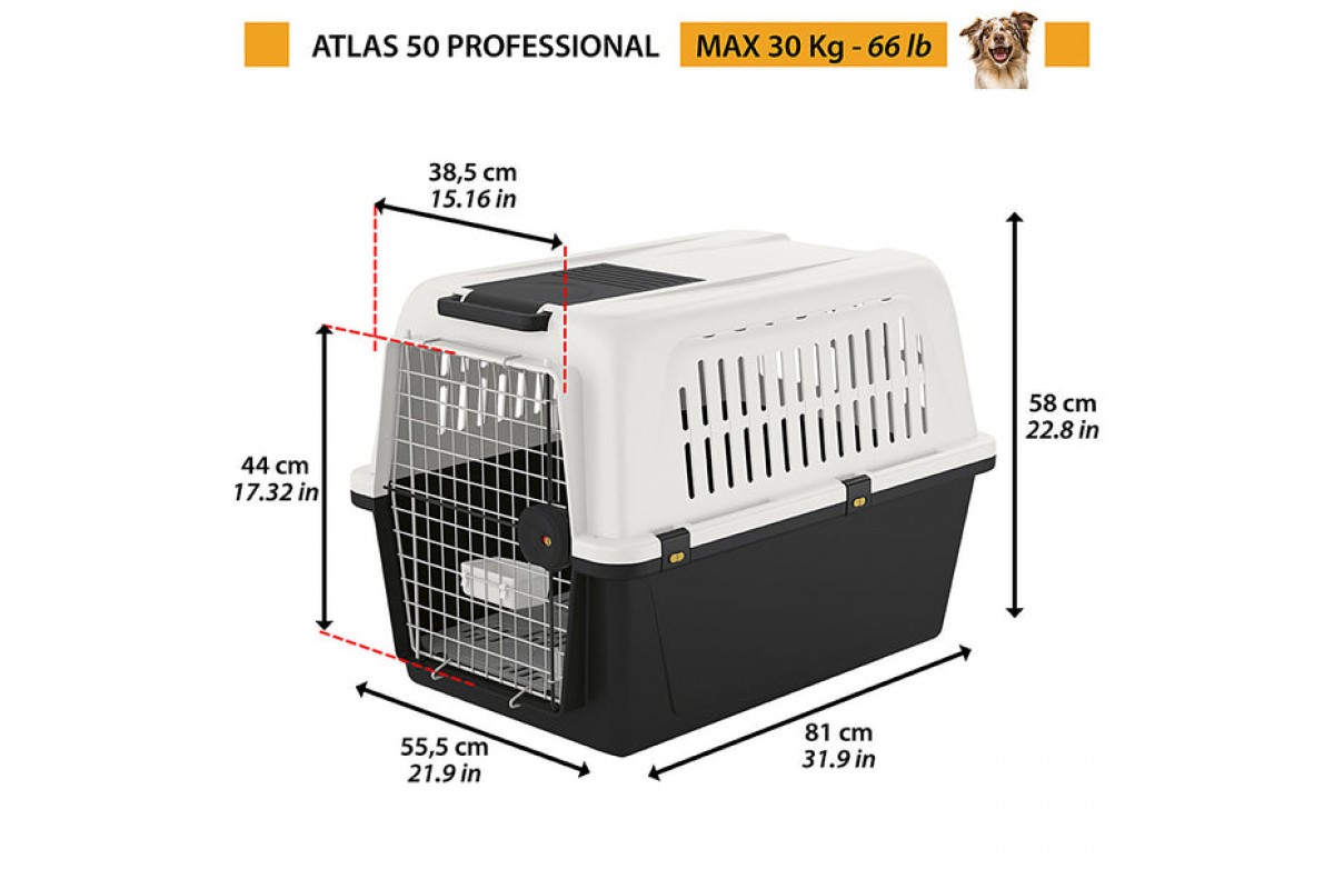 Ferplast ATLAS 50 PROFESSIONAL перенесення для великих та гігантських порід собак. Вона допоможе комфортно та затишно подорожувати з вихованцем в автомобілі, поїзді, і навіть на кораблі та літаку. Перенесення укомплектовано необхідними аксесуарами та відповідає всім вимогам IATA для подорожі з тваринами.