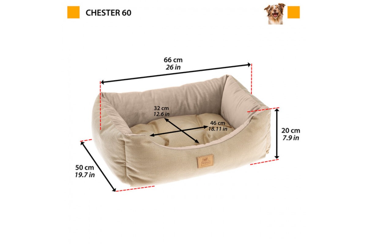 Серед продукції в цьому ряду ви знайдете маленького Честера дивана, ідеалу для малих і середнього розміру тварин, собак і котів, особливо протягом зимового сезону. Ліжко має товсте заповнення для максимальної зручності та обладнане зниженою передньою стороною, щоб полегшити вхід та вихід вашого вихованця. Це також повно з двосторонньої подушкою з однією стороною у стійкій тканині Твідового ефекту та однією стороною у оксамиті, повністю відповідав до ліжка. Весь Честерський собака та постільні приналежності кота легкі для прибирання, тому що вони є повністю