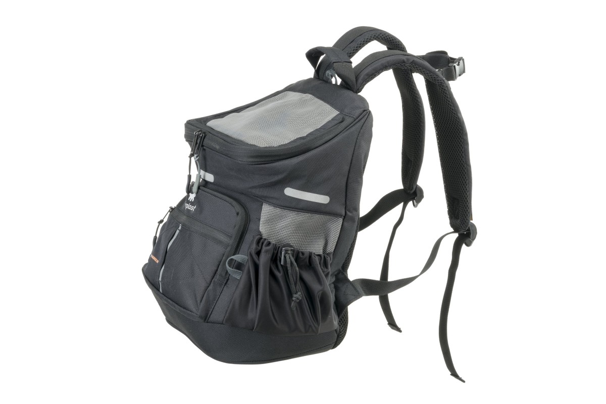 Для більшої практичності рюкзак має кілька кишень: передню та бічні, які відмінно підходять для зберігання ласощів, пляшки з водою або інших корисних аксесуарів. Інтегровані світловідбиваючі елементи підвищують видимість в умовах поганого освітлення, збільшуючи безпеку у вечірній час або в умовах низького освітлення.