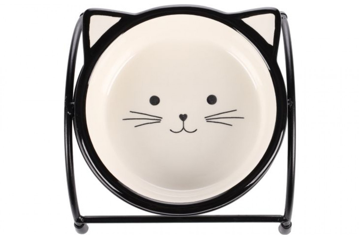 Миска на підставці для котів Flamingo Ansu Cat АНСУ КЕТ, керамічна, 230 мл, чорно-білий