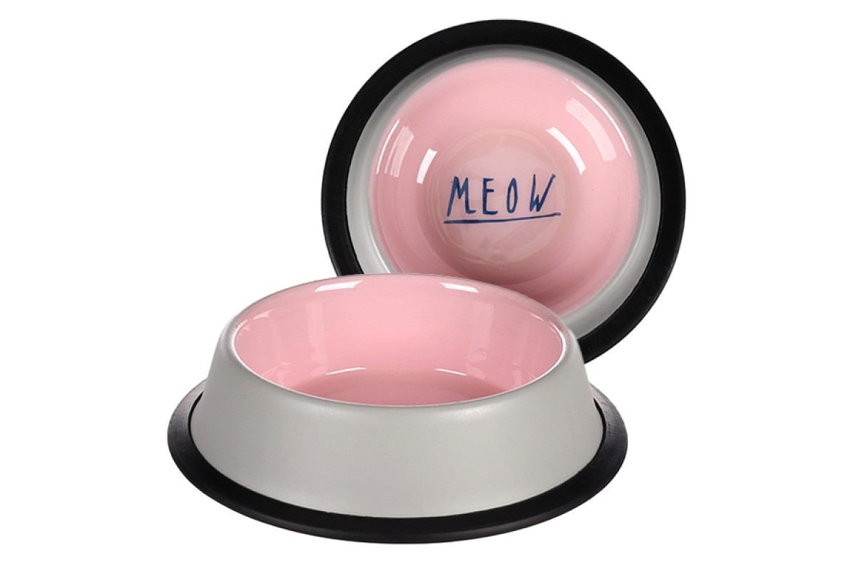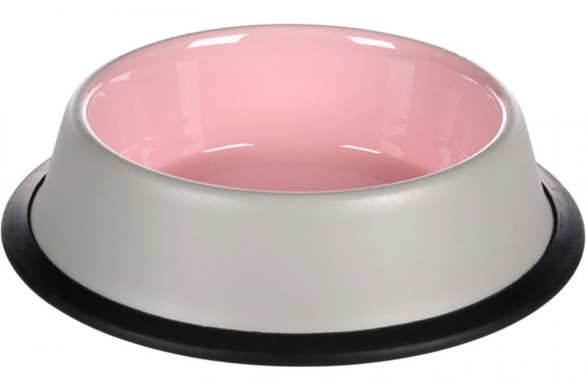 Миска для котів Flamingo Nell Antislip АНТИСЛІП, емальована, 0.2 л, рожевий - сірий