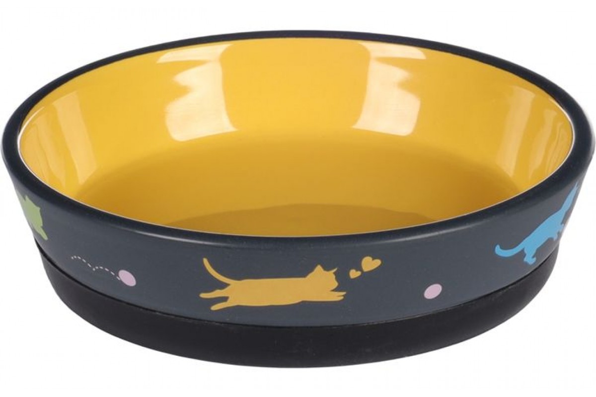 Миска для котів Flamingo Rani Antislip РАНІ АНТИСЛІП, керамічна, 320мл, темно-сірий - жовтий