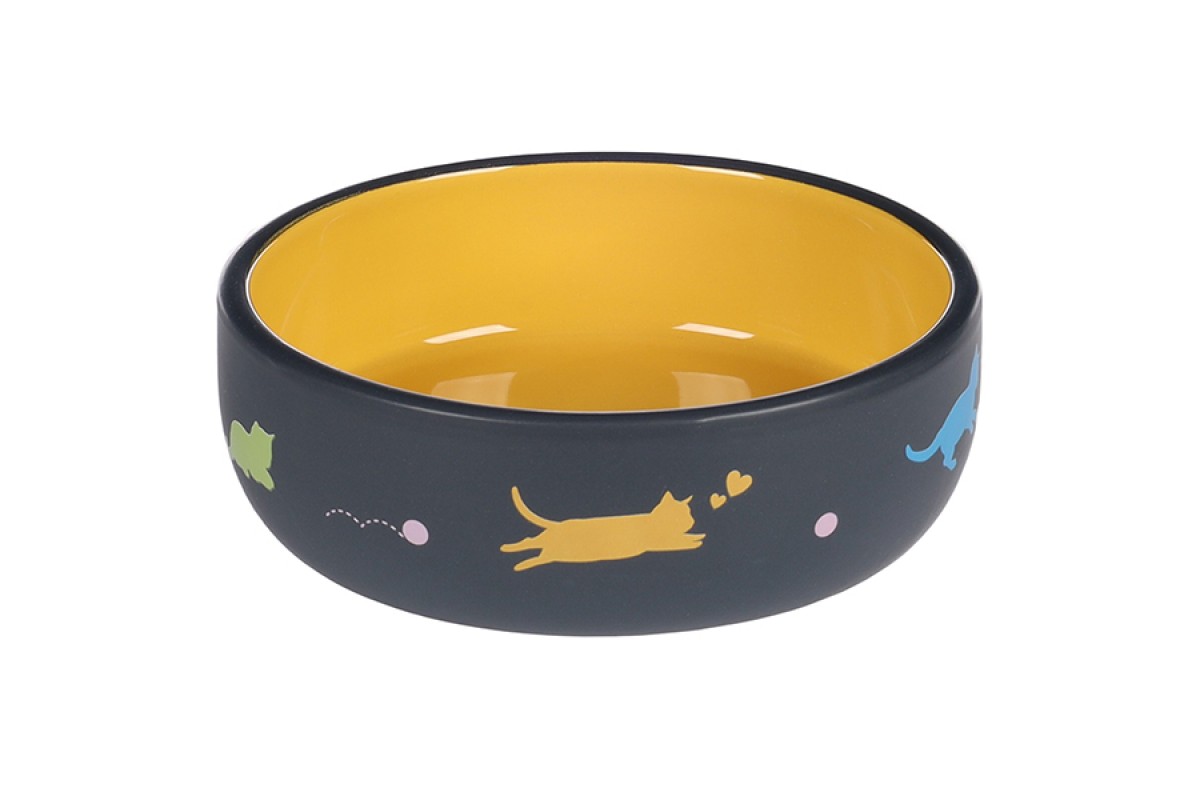 Миска для котів Flamingo Rani Round РАНІ РАУНД, керамічна, 380мл, темно-сірий - жовтий