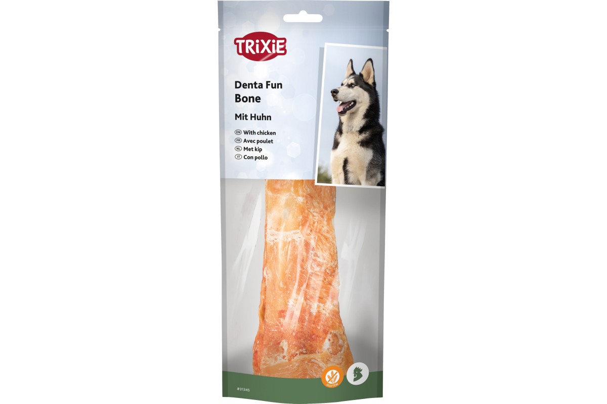 - Жувальна кісточка «Denta Fun» зі смаком курочки – це чудові ласощі для собак!
