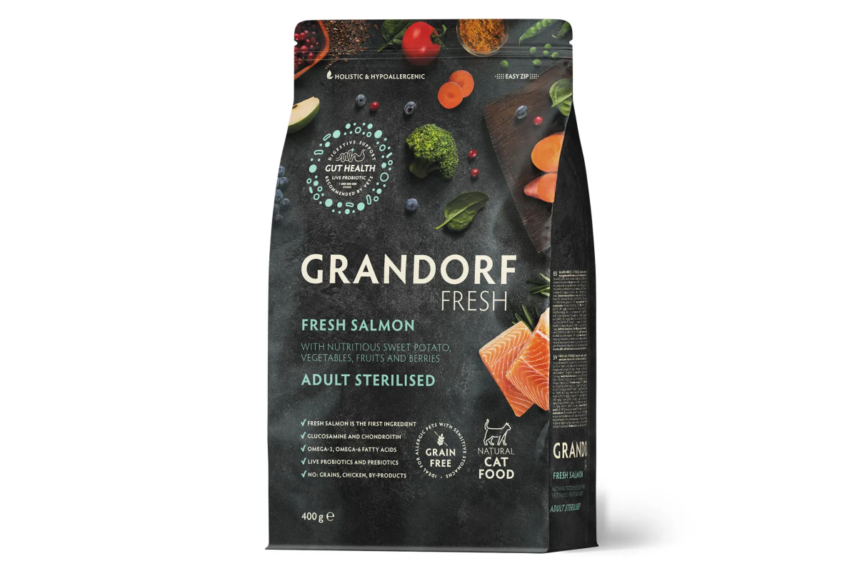 Сухий корм Grandorf FRESH SALMON & SWEET POTATO, для стерилізованих котів, лосось з бататом, 400 г