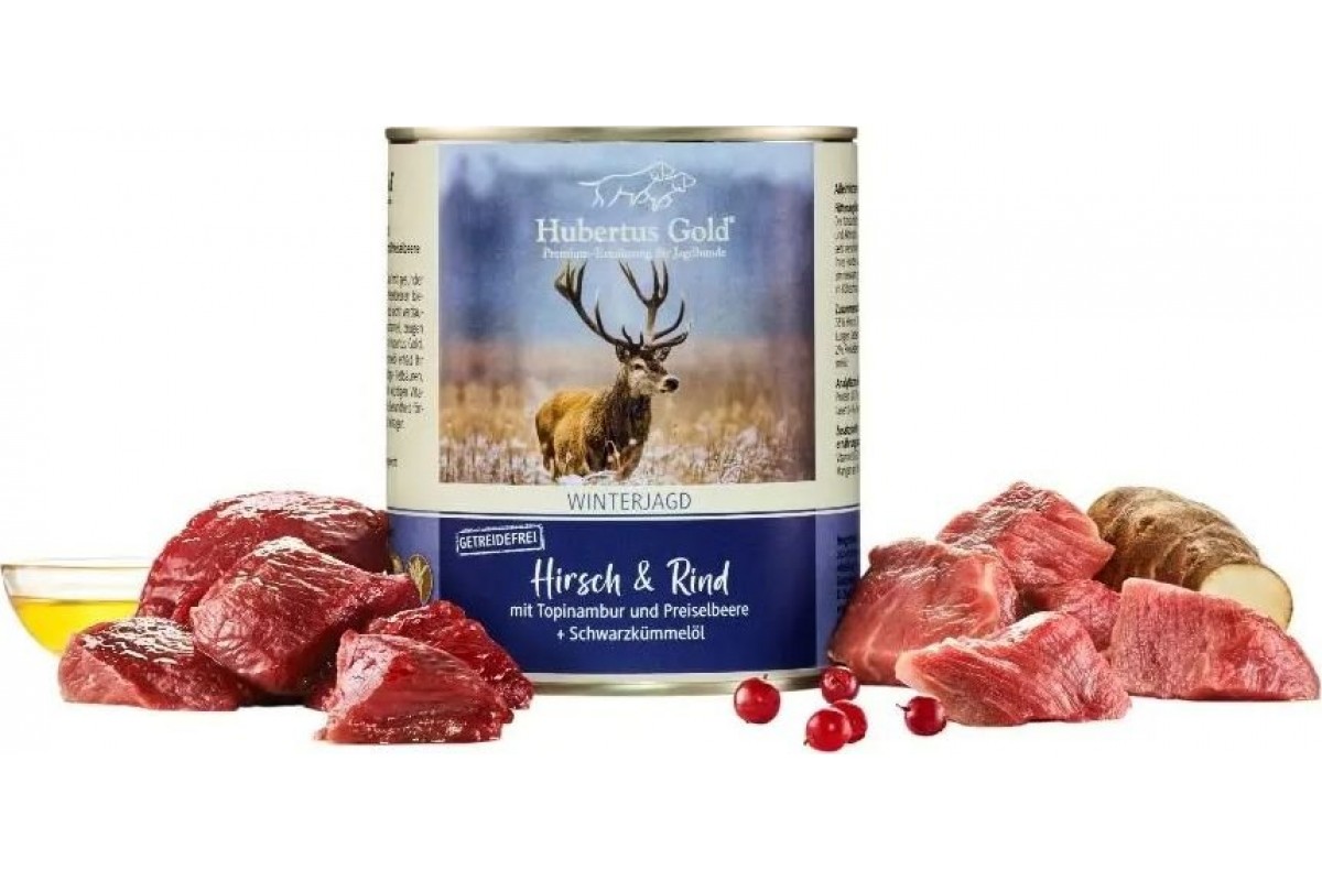 Вологий корм HUBERTUS GOLD Hirsch & Rind, оленина та яловичина з топінамбуром та червоними ягодами, 800 г