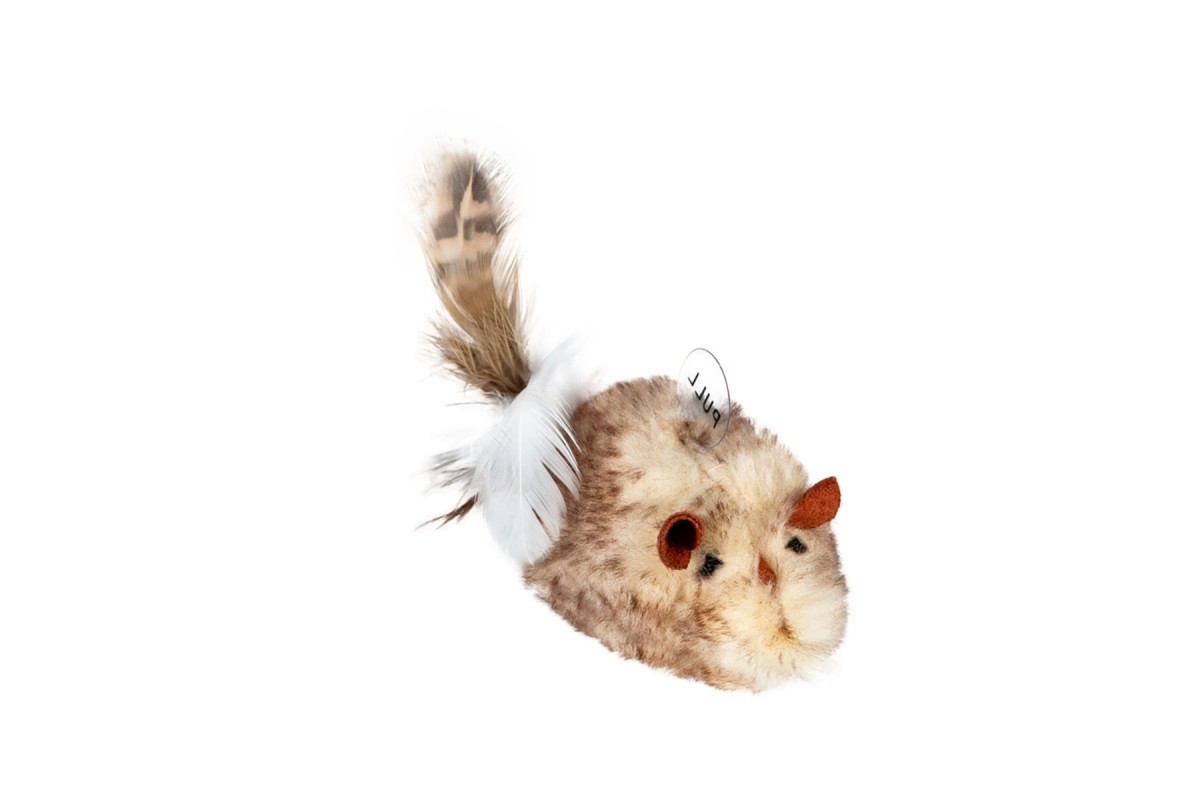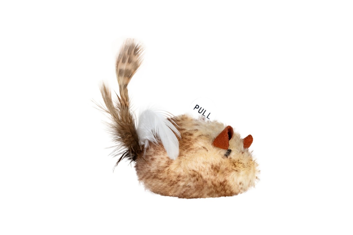Іграшка для котів WAUCAT Fun Melodic Мишка зі звуковим чипом, штучне хутро, перо, 13 см