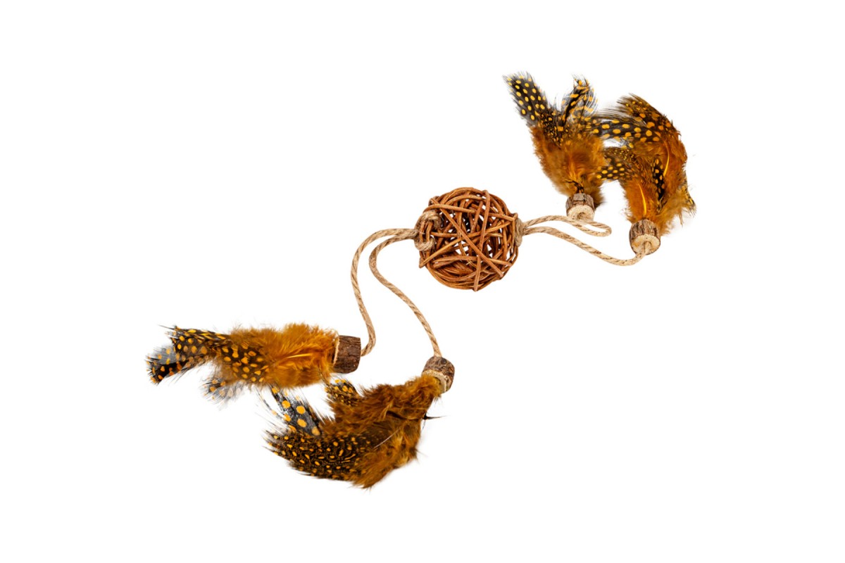 Іграшка для котів WAUCAT Fun Natural Плетений м'ячик з дзвіночком і пір'ям, 40 см