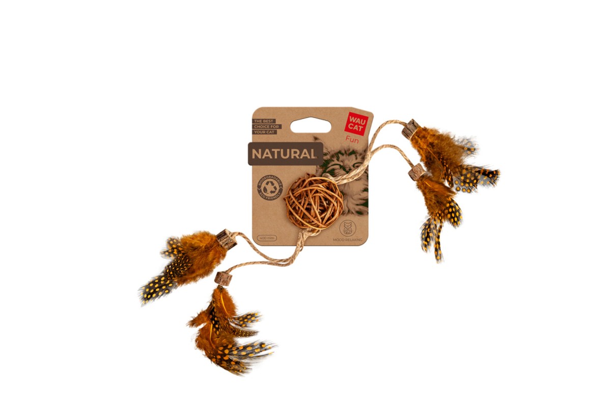 Серія WAUCAT Fun Natural — це іграшки, які виготовлені виключно з екологічних матеріалів, а отже дбайливі до навколишнього середовища. Крім того, вони абсолютно безпечні для тварин, не мають неприємного запаху, та призначені для задоволення природних інстинктів улюбленця. Завдяки пір'їнкам та іншим декоративним елементам, іграшка одразу приверне увагу котика та зацікавить його на довгий час.