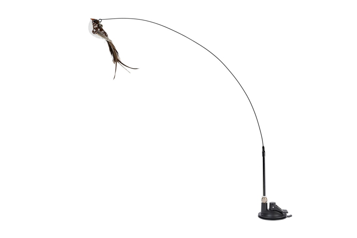 Іграшка для котів WAUCAT Fun Teaser дражнилка на присосці з пташкою, білий, пластик, перо, 80 см
