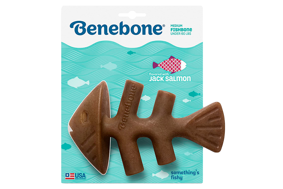 - Смак лосося, що триває весь довгий процес гризіння. Іграшки Benebone зроблені з міцного нейлону та справжнього лосося. Можна обдурити нюх людей, але не собачий! І хоч би скільки прослужила ця іграшка, аромат лосося нікуди не зникне. Все це досягається за допомогою унікальної текстури.