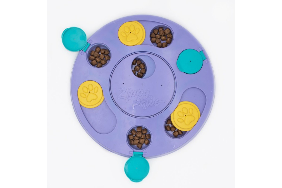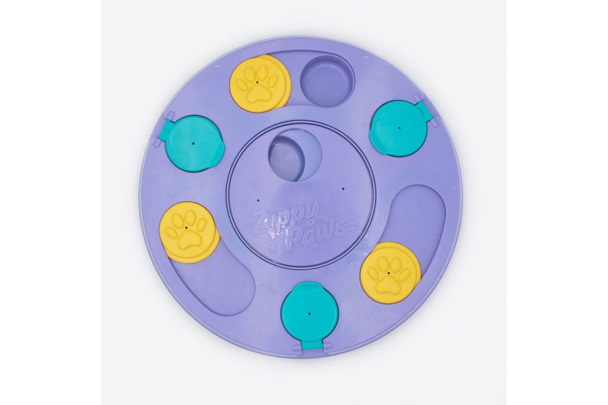 Новий фіолетовий колір! Настав час собакам взяти справу у свої власні лапи з головоломкою SmartyPaws! Ця абсолютно нова інтерактивна іграшка від ZippyPaws навчає собак навичкам вирішення проблем, щоб весело та захоплююче отримувати ласощі чи крупки! Гра 3-в-1 має різні рівні складності, які розважають і зменшують нудьгу, одночасно навчаючи вашого цуценя навичкам вирішення проблем. Нековзка основа для запобігання ковзанню.