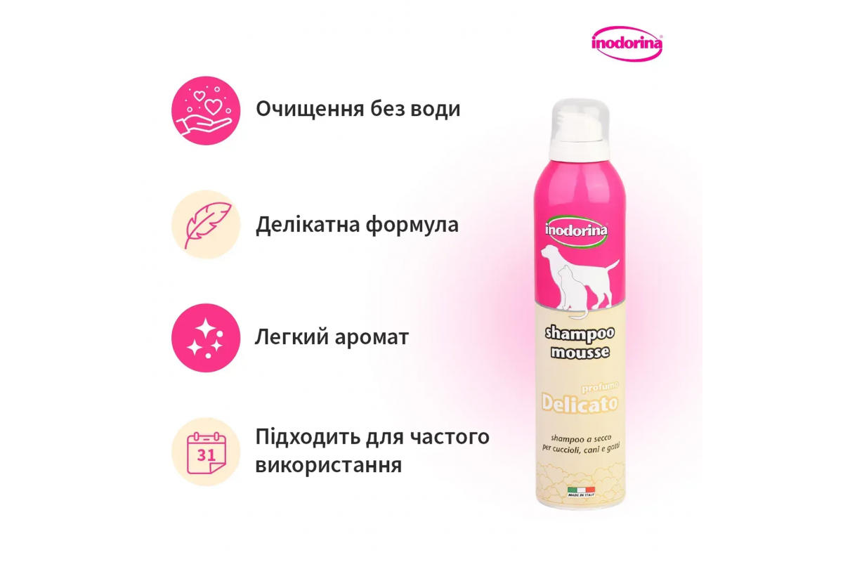 Inodorina Shampoo Mousse Delicate - Сухий шампунь-мус для делікатного очищення, 300 мл
