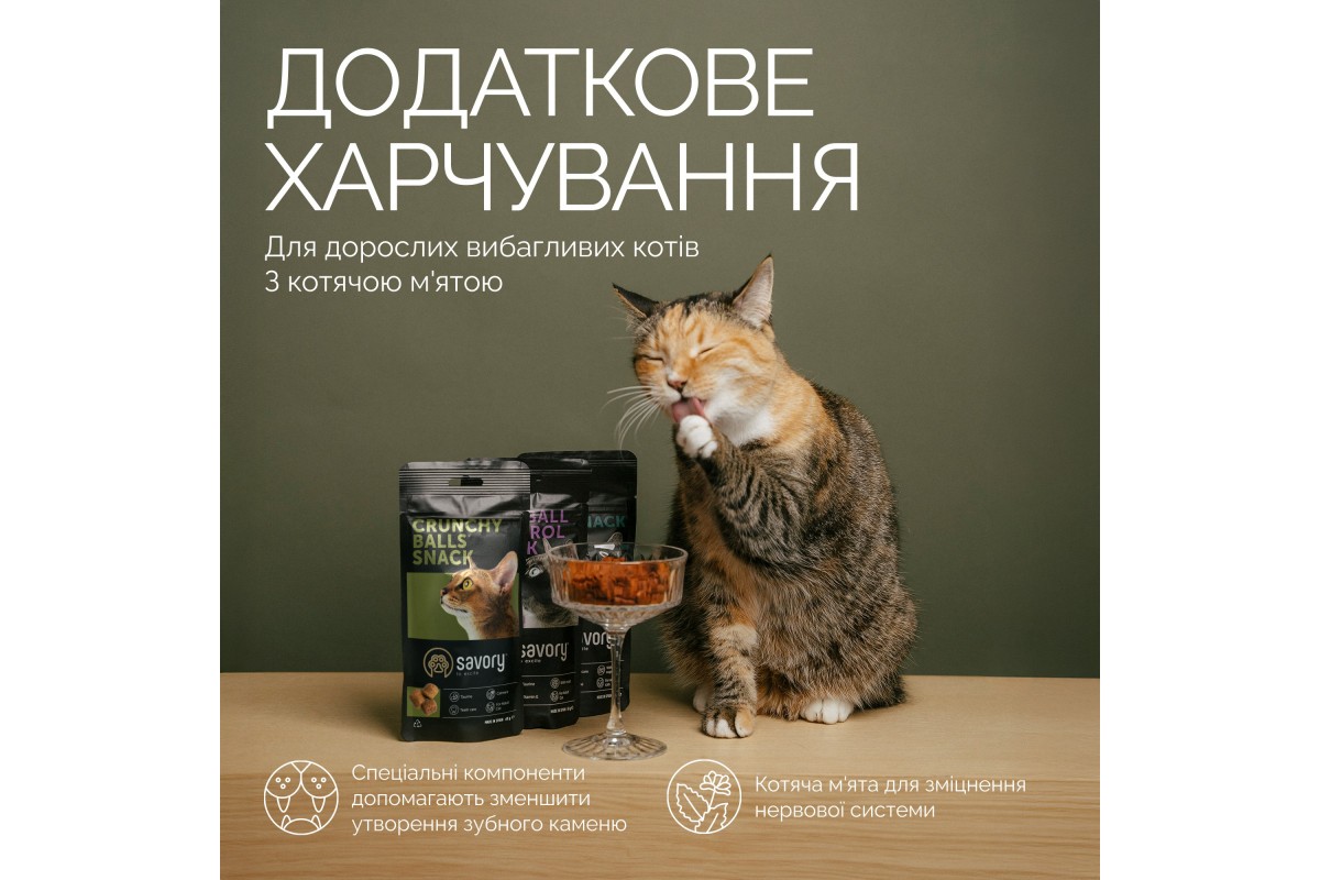 Хрумкі ласощі Savory Cats Snacks Crunchy Balls для вибагливих котів, кульки з котячою м'ятою, 60 г