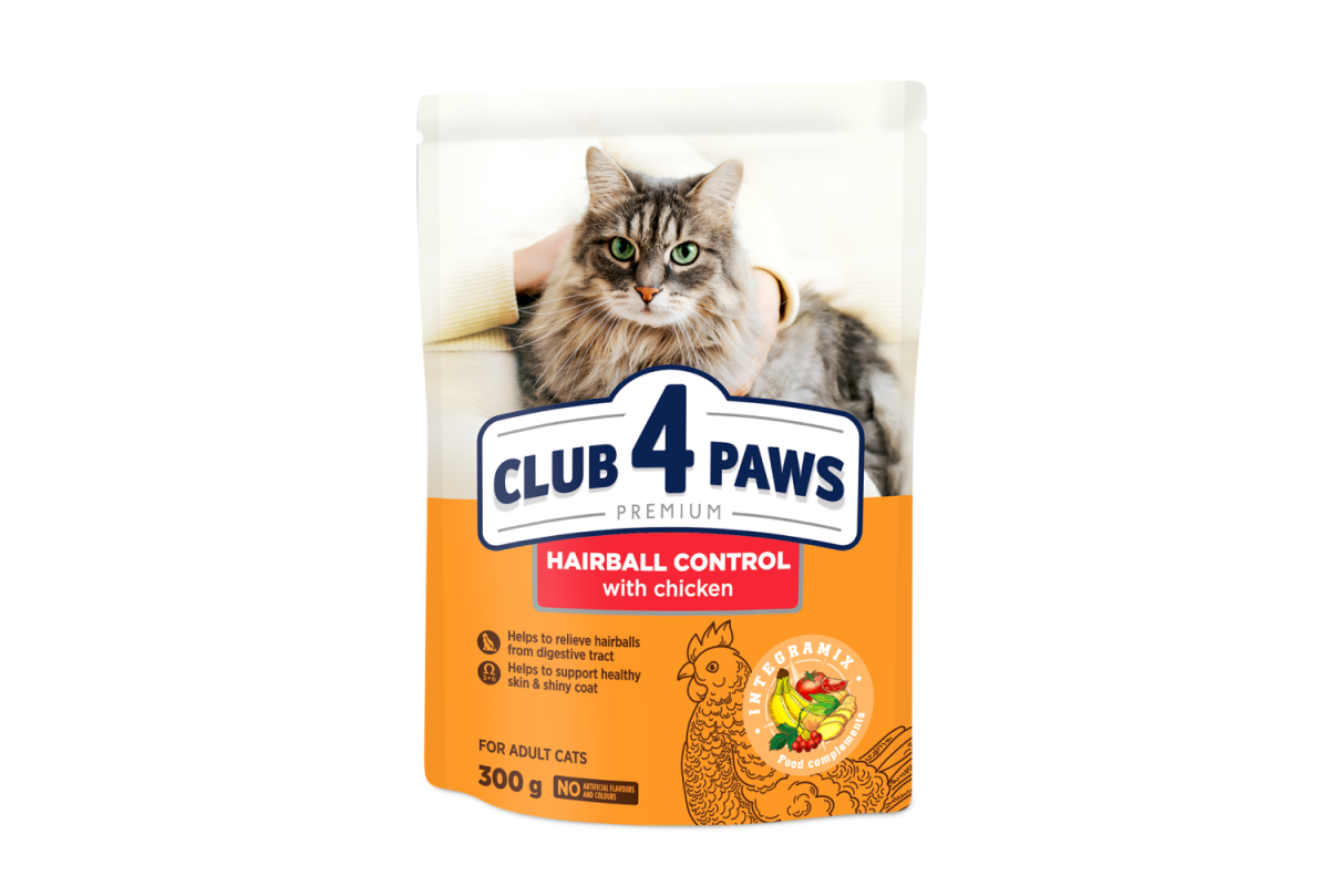 Сухий корм Club 4 Paws (Клуб 4 лапи) Hairball Control, для дорослих котів, з ефектом виведення вовни із травного тракту, 300 г