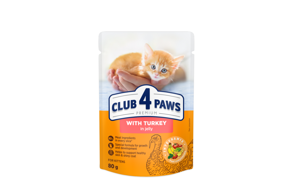 Вологий корм Club 4 Paws (Клуб 4 лапи) Premium, для кошенят, з індичкою в желе, 80 г