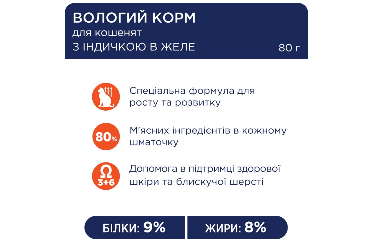 Club 4 Paws Premium з індичкою в желе для кошенят - це вологий раціон, розроблений для турботи про здоров'я та розвиток вашого маленького улюбленця. Смачна індичка і ніжне желе створюють неповторний смак, який сподобається вашому кошеняті.